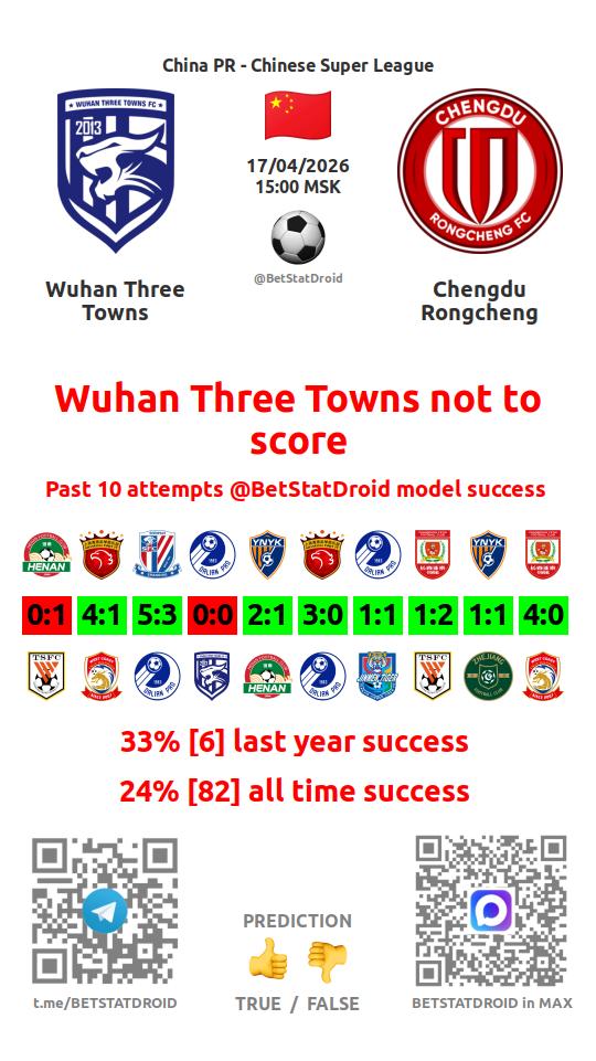 ✔ Ухань Фри Таунс забивает в 4 матчах