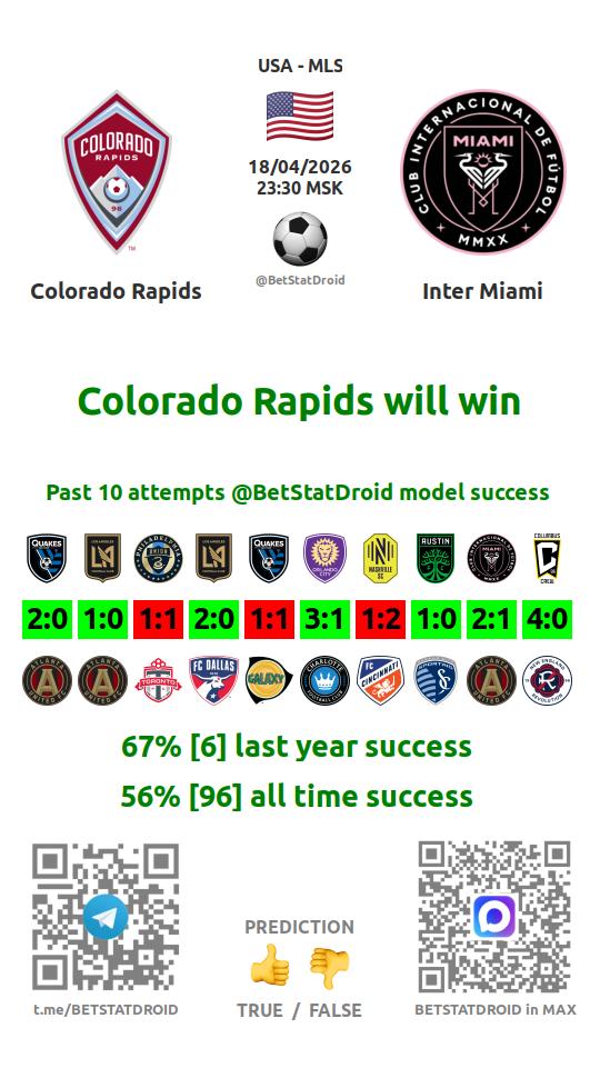 ✔ Колорадо Рэпидс пропускает меньше 2,5 голов в 18 матчах