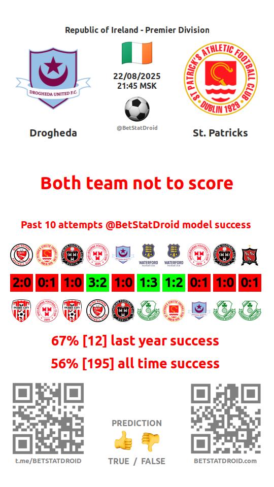 ✔ Дрогеда Юнайтед не забивает в 3 матчах