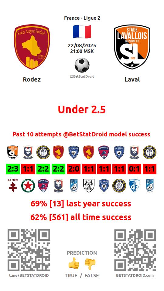 ✔ Лаваль забивает меньше 2,5 голов в 9 матчах