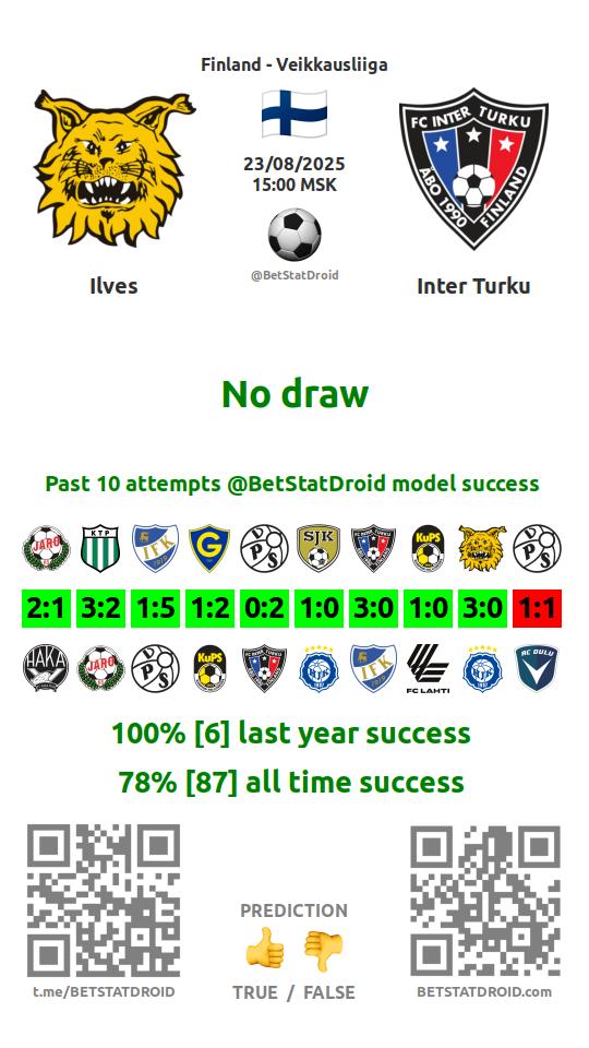 ✔ Интер Турку забивает меньше 2,5 голов в 13 матчах