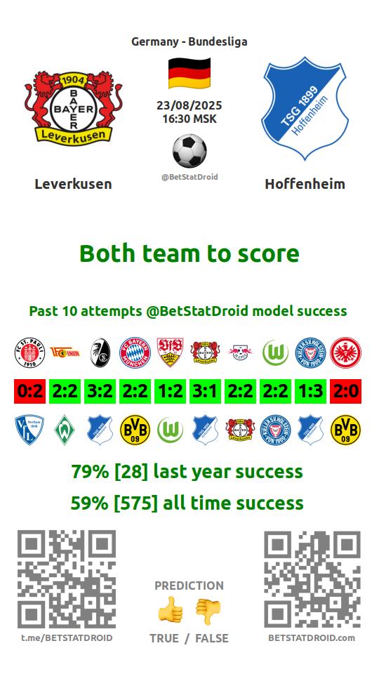 ✔ Хоффенхайм пропускает больше 1,5 голов в 5 матчах