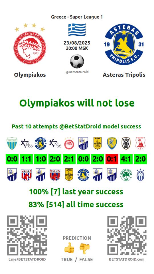 ✔ Олимпиакос пропускает меньше 2,5 голов в 20 матчах