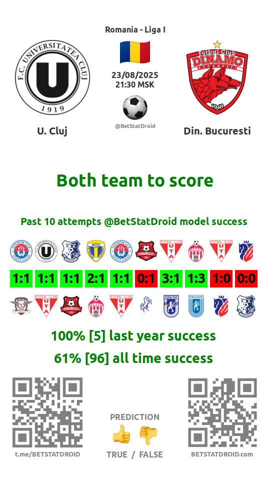 ✔ Университатя Клуж забивает меньше 2,5 голов в 8 матчах