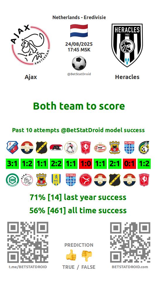 ✔ Хераклес забивает меньше 2,5 голов в 19 матчах