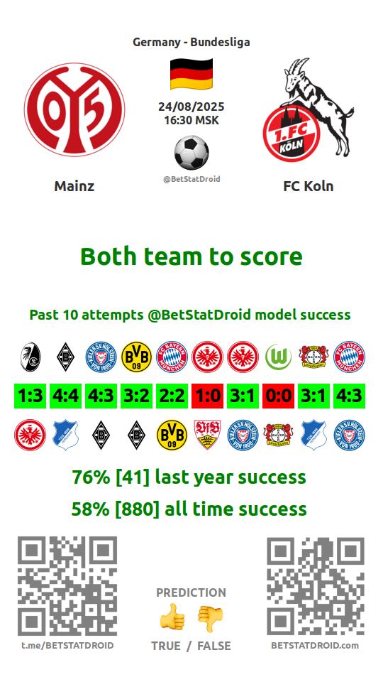 ✔ Майнц забивает в 6 матчах