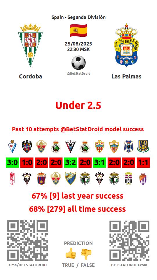 ✔ Лас-Пальмас забивает меньше 2,5 голов в 12 матчах