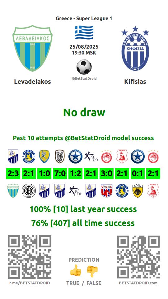 ✔ Левадиакос пропускает меньше 2,5 голов в 25 матчах