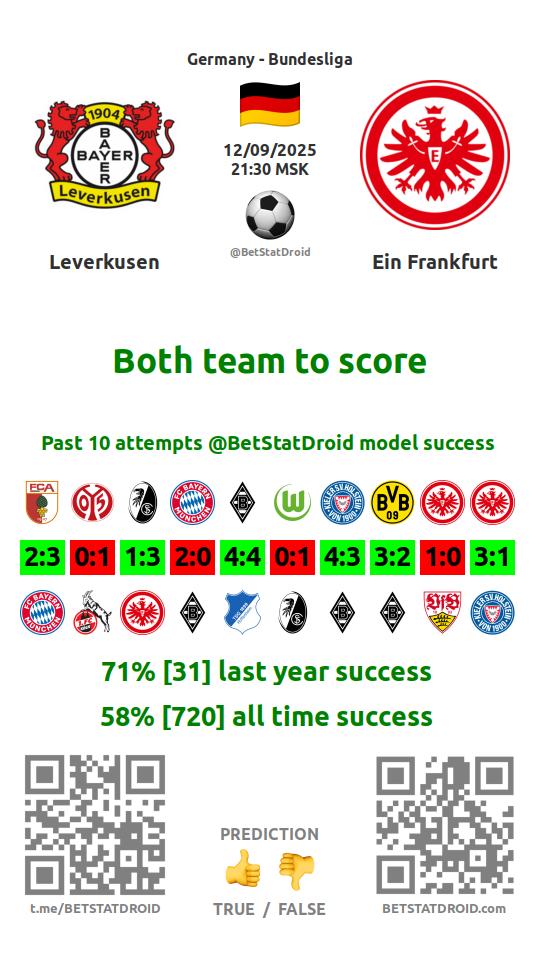 ✔ Байер забивает больше 1,5 голов в 10 матчах