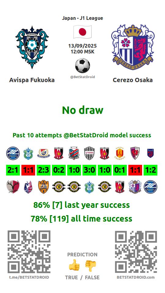 ✔ Ависпа Фукуока забивает меньше 2,5 голов в 9 матчах