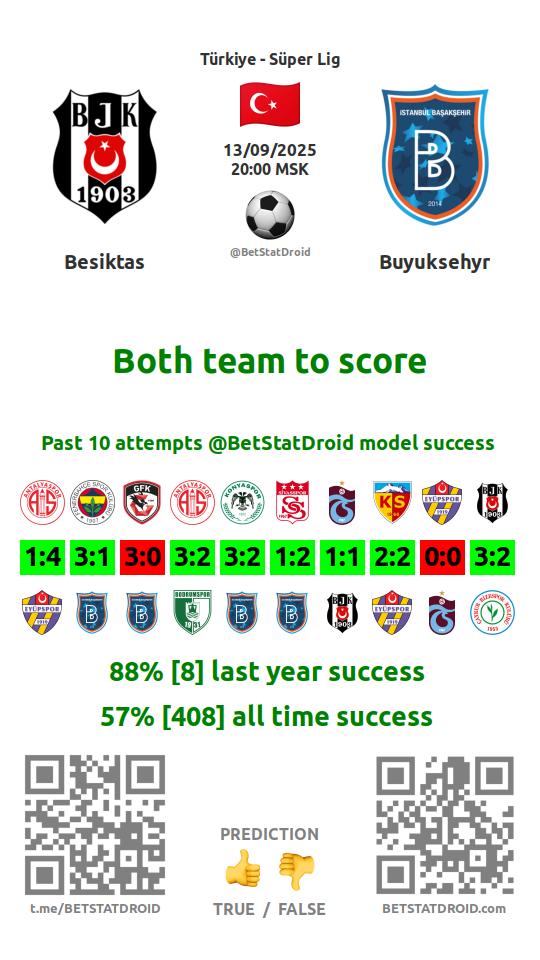✔ Бешикташ пропускает меньше 2,5 голов в 13 матчах