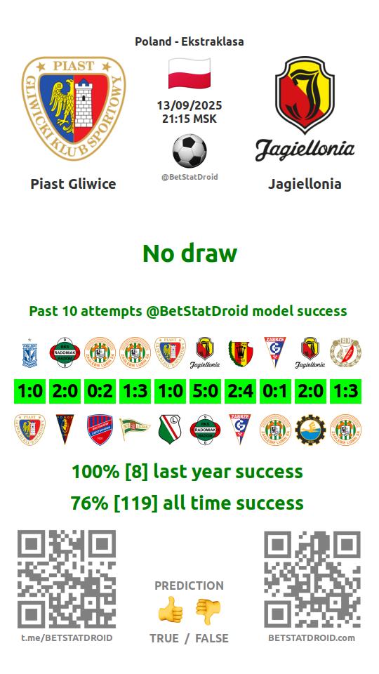 ✔ Ягеллония забивает меньше 2,5 голов в 15 матчах