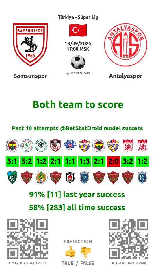 ✔ Самсунспор пропускает меньше 2,5 голов в 15 матчах