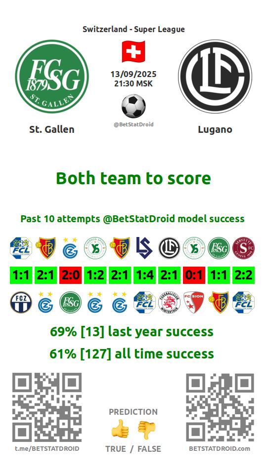 ✔ Санкт-Галлен пропускает меньше 1,5 голов в 5 матчах