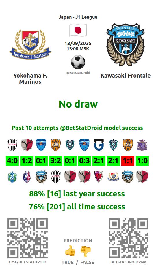 ✔ Йокогама Ф. Маринос пропускает меньше 1,5 голов в 7 матчах