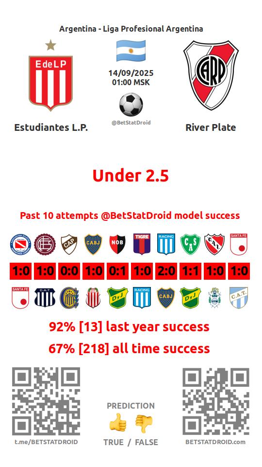 ✔ Эстудиантес забивает меньше 2,5 голов в 17 матчах