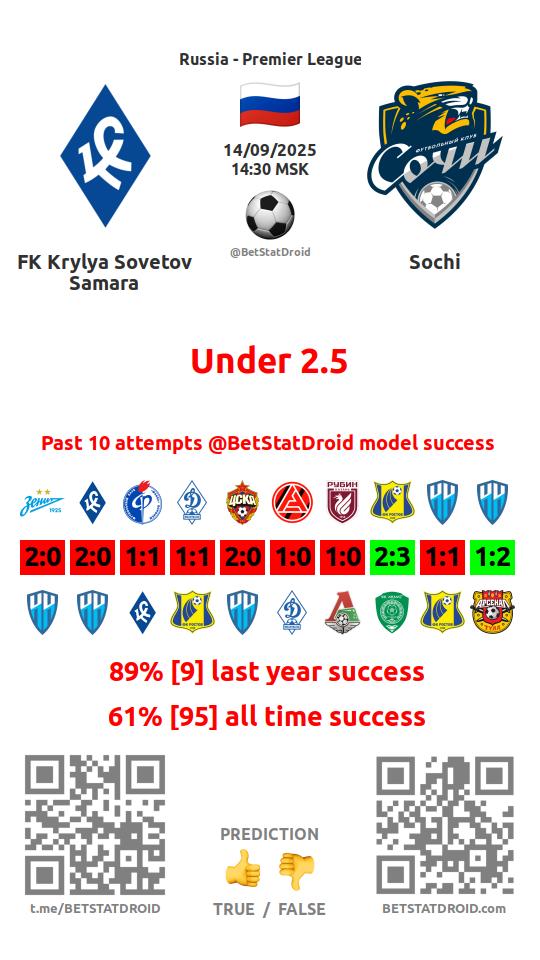 ✔ Сочи забивает меньше 2,5 голов в 9 матчах