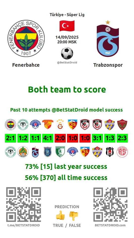 ✔ Трабзонспор забивает меньше 2,5 голов в 9 матчах