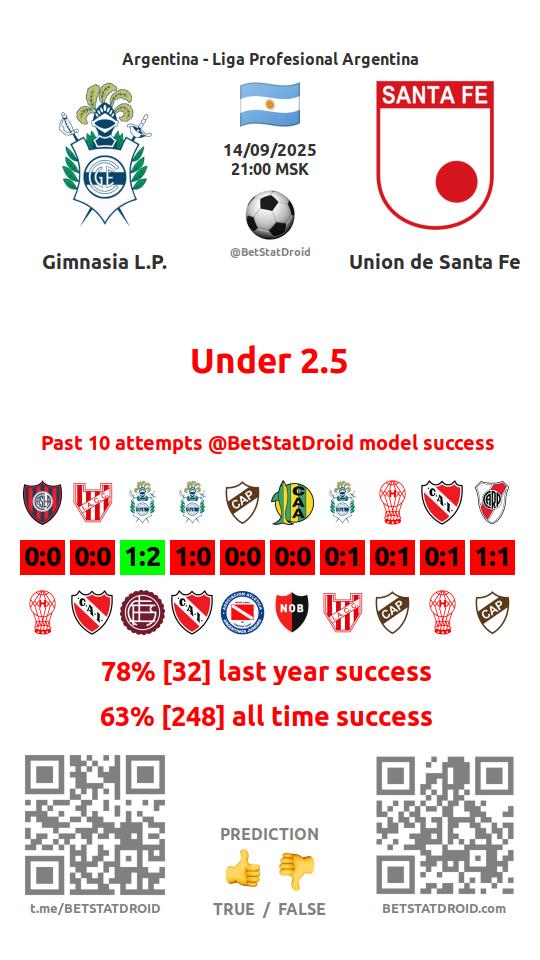 ✔ Унион Санта-Фе пропускает меньше 2,5 голов в 22 матчах