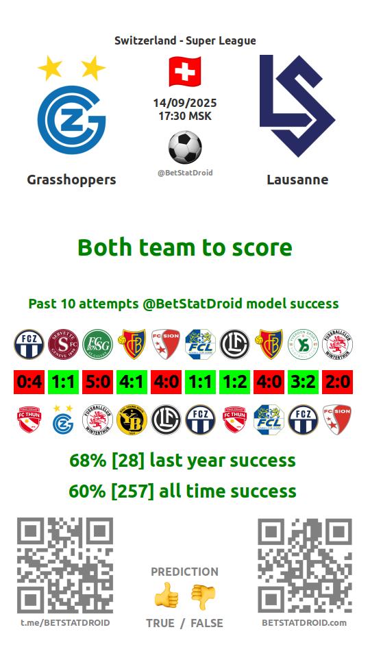 ✔ Грассхоппер забивает в 4 матчах