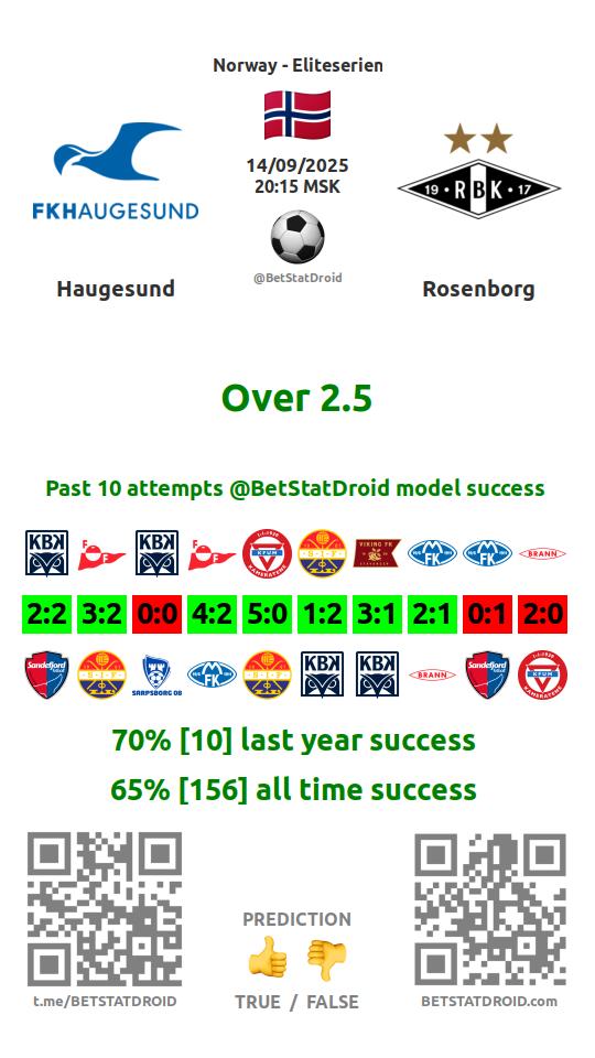 ✔ Хаугесунн забивает меньше 2,5 голов в 11 матчах
