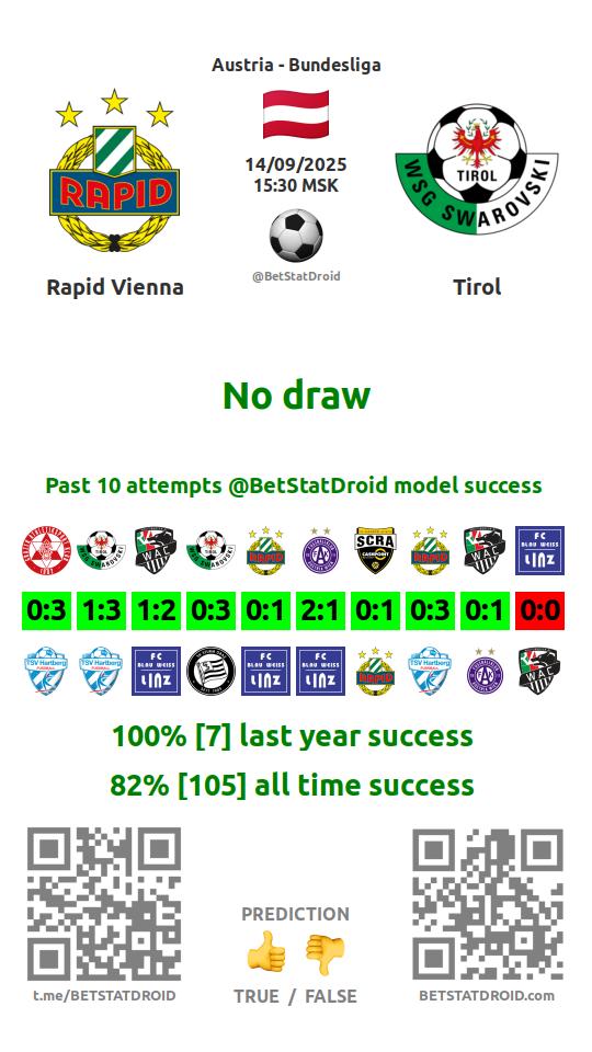 ✔ Тироль забивает меньше 2,5 голов в 13 матчах