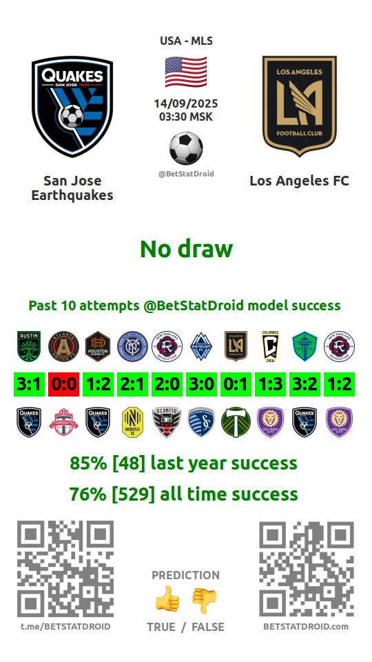 ✔ Сан-Хосе Эрткуэйкс забивает меньше 2,5 голов в 10 матчах