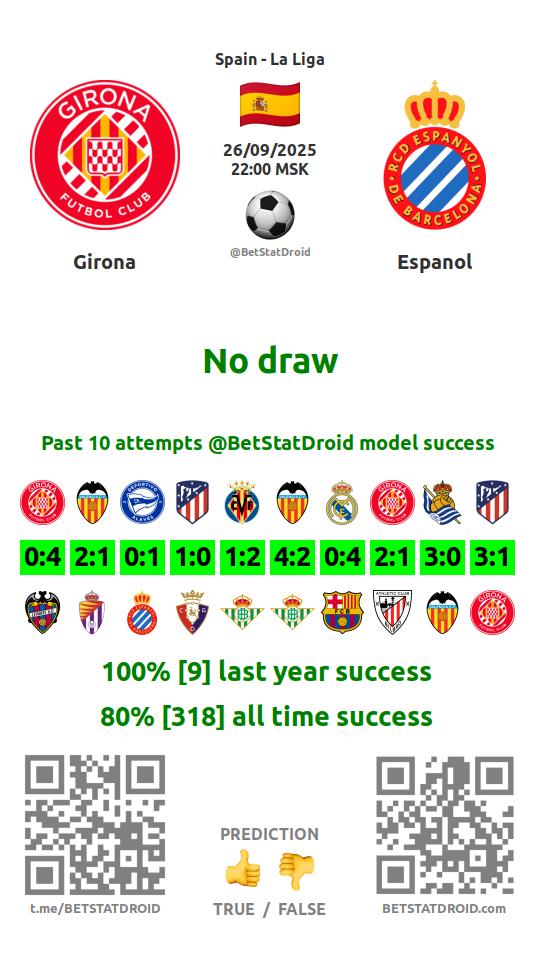 ✔ Жирона забивает меньше 2,5 голов в 26 матчах