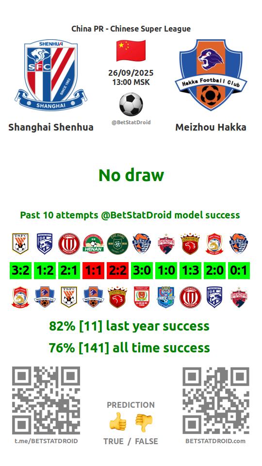 ✔ Мэйчжоу Хакка забивает меньше 2,5 голов в 16 матчах