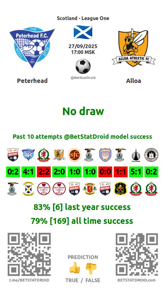 ✔ Аллоа Атлетик забивает меньше 2,5 голов в 13 матчах