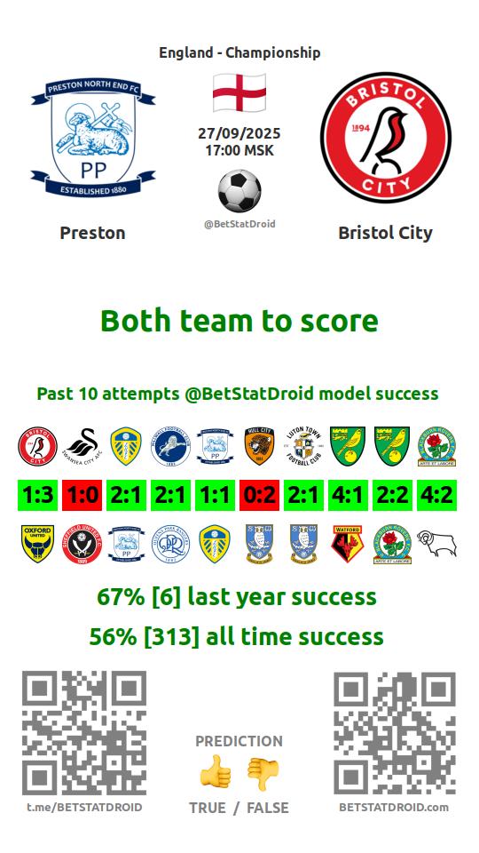 ✔ Престон пропускает меньше 2,5 голов в 27 матчах
