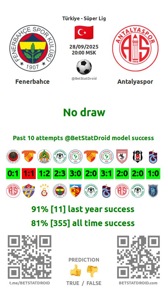 ✔ Фенербахче забивает больше 1,5 голов в 6 матчах
