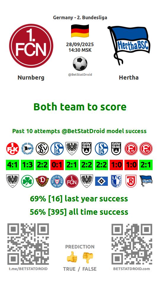 ✔ Нюрнберг пропускает меньше 2,5 голов в 8 матчах