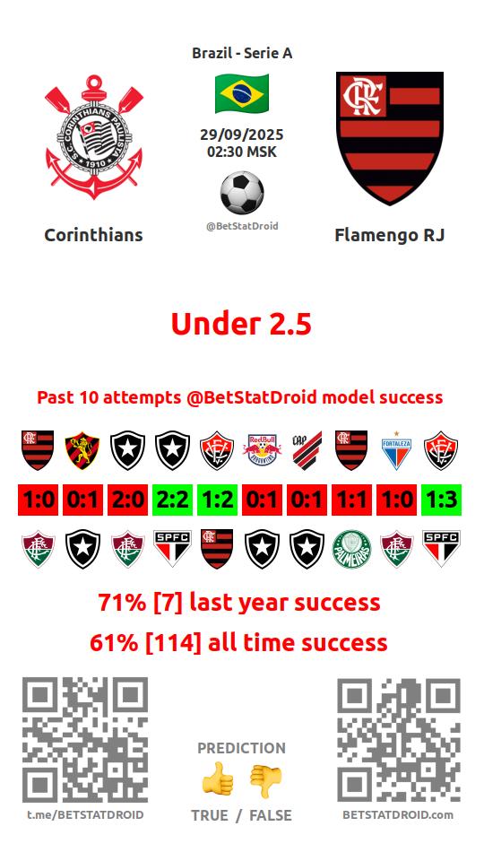 ✔ Коринтианс забивает меньше 2,5 голов в 18 матчах