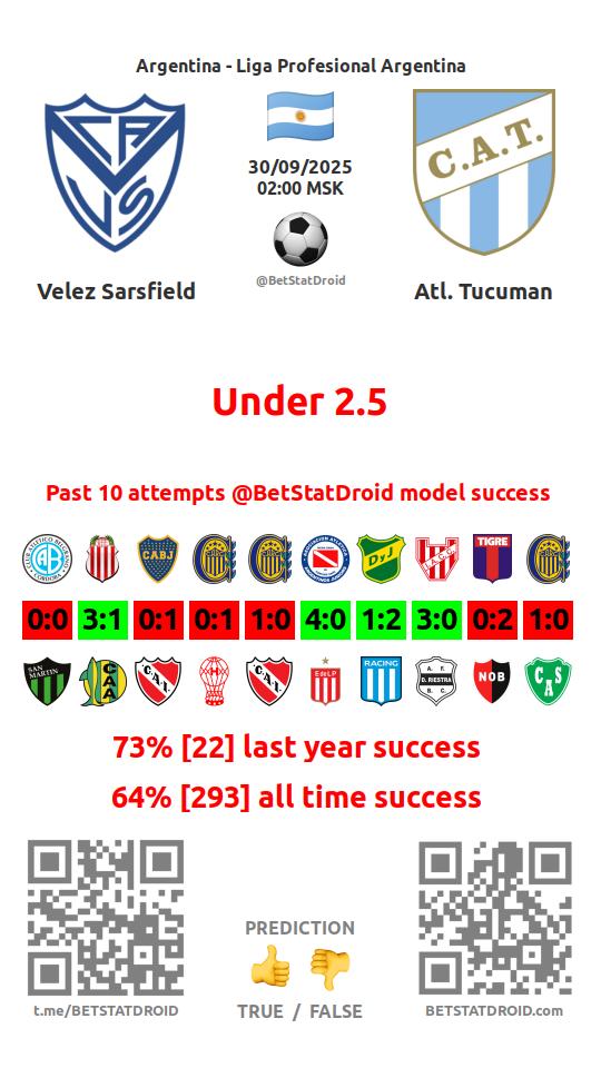 ✔ Велес Сарсфилд пропускает меньше 2,5 голов в 47 матчах
