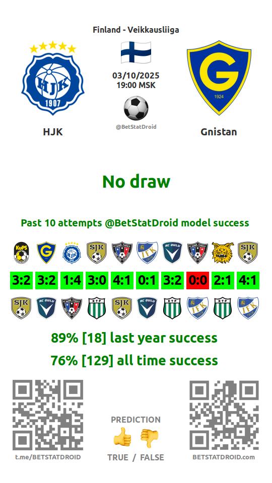 ✔ Гнистан пропускает больше 1,5 голов в 5 матчах
