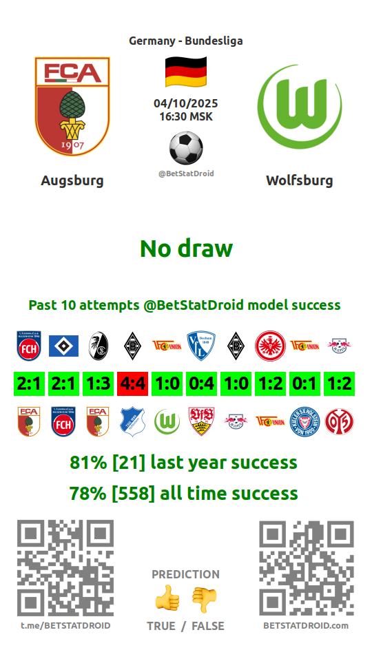 ✔ Аугсбург забивает меньше 2,5 голов в 17 матчах