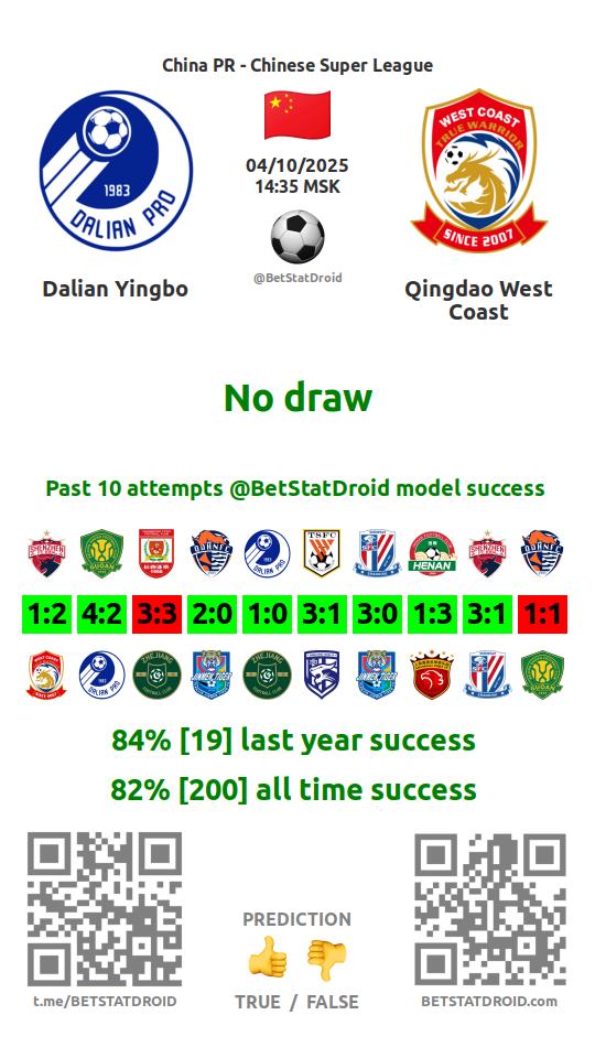 ✔ Далянь Инбо забивает меньше 2,5 голов в 15 матчах