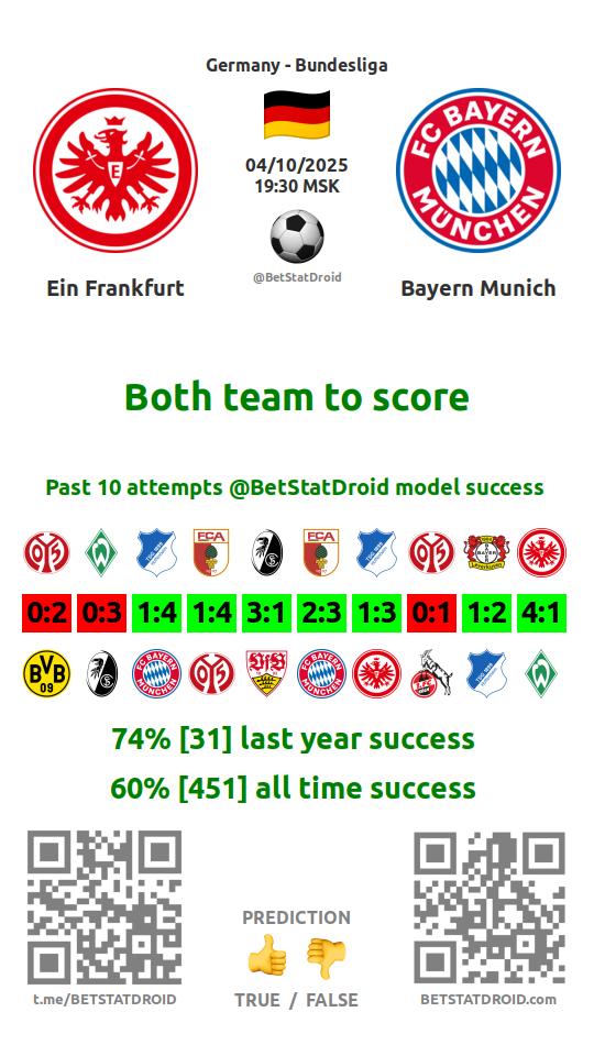 ✔ Айнтрахт Ф забивает больше 1,5 голов в 5 матчах