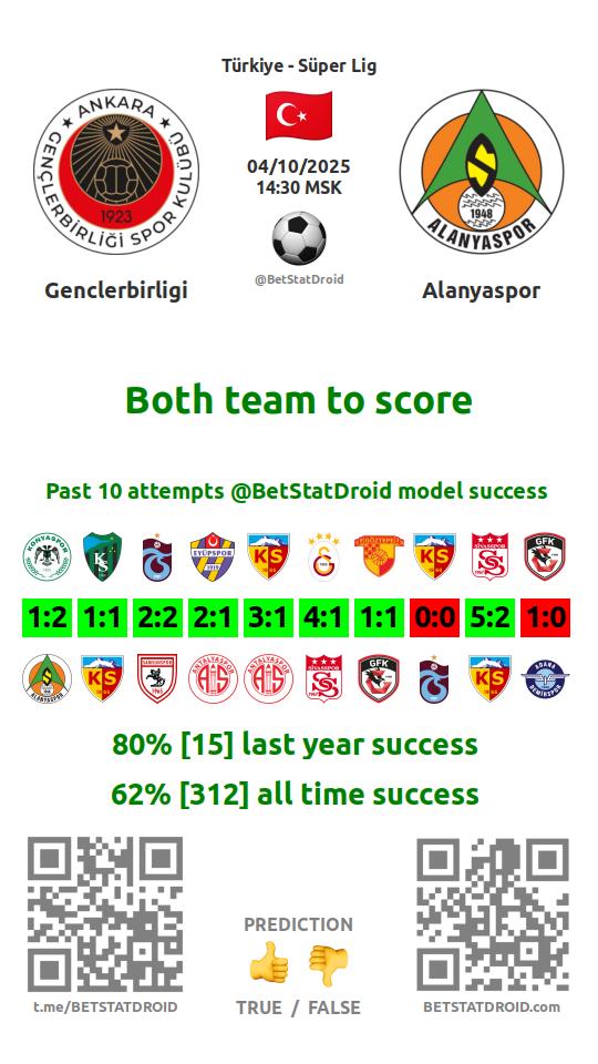 ✔ Генчлербирлиги забивает в 4 матчах