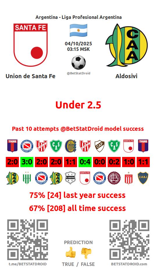 ✔ Унион Санта-Фе пропускает меньше 2,5 голов в 25 матчах