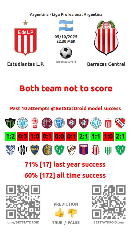 ✔ Барракас Сентраль пропускает меньше 1,5 голов в 5 матчах