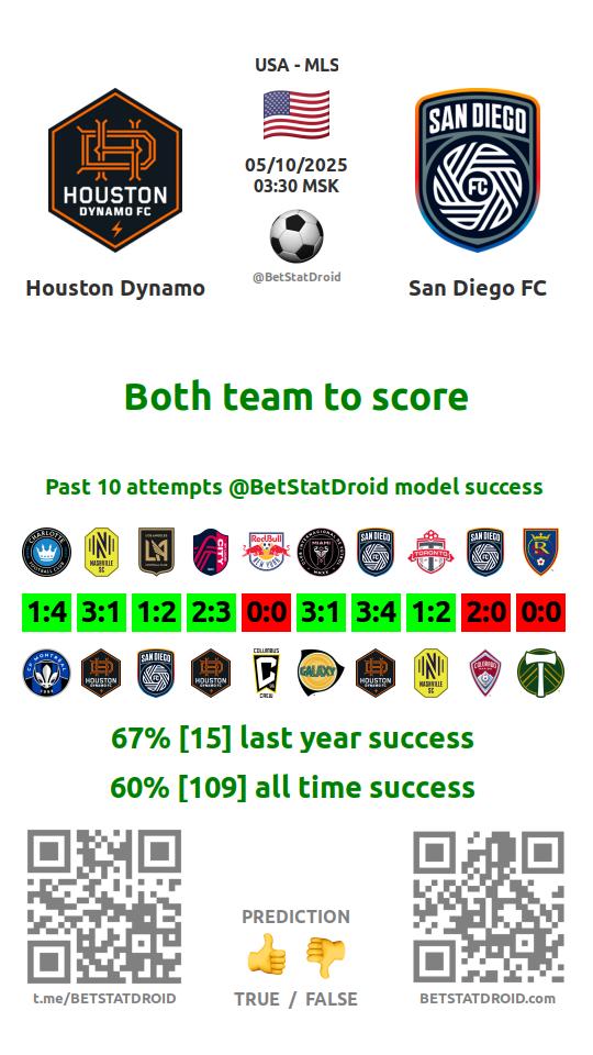 ✔ Хьюстон Динамо забивает меньше 1,5 голов в 8 матчах