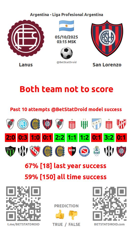 ✔ Ланус пропускает меньше 2,5 голов в 56 матчах
