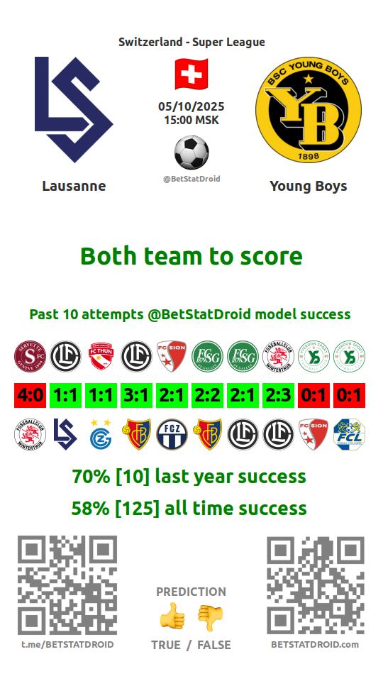 ✔ Лозанна забивает меньше 1,5 голов в 6 матчах