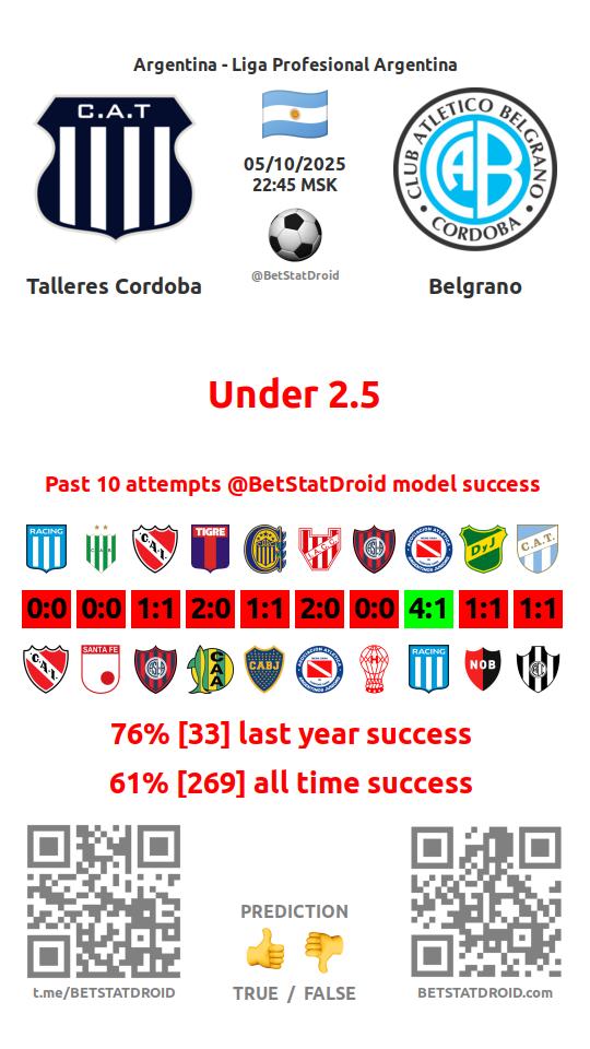✔ Бельграно пропускает меньше 2,5 голов в 9 матчах