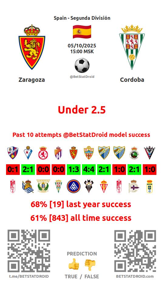 ✔ Сарагоса забивает меньше 2,5 голов в 10 матчах