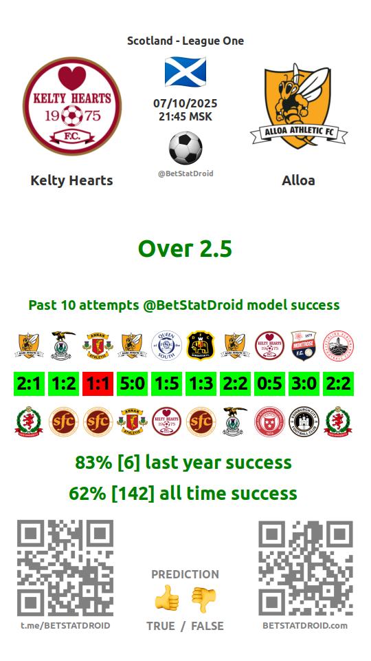 ✔ Аллоа Атлетик забивает меньше 2,5 голов в 12 матчах