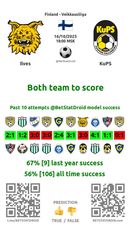 ✔ КуПС забивает в 13 матчах