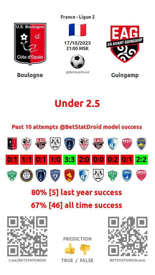 ✔ Булонь забивает меньше 1,5 голов в 6 матчах